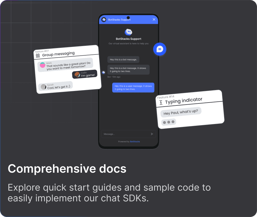 Flexibility: Our chat SDKs offer a broader range of interactions without imposing restrictions on message formats or automation rules.