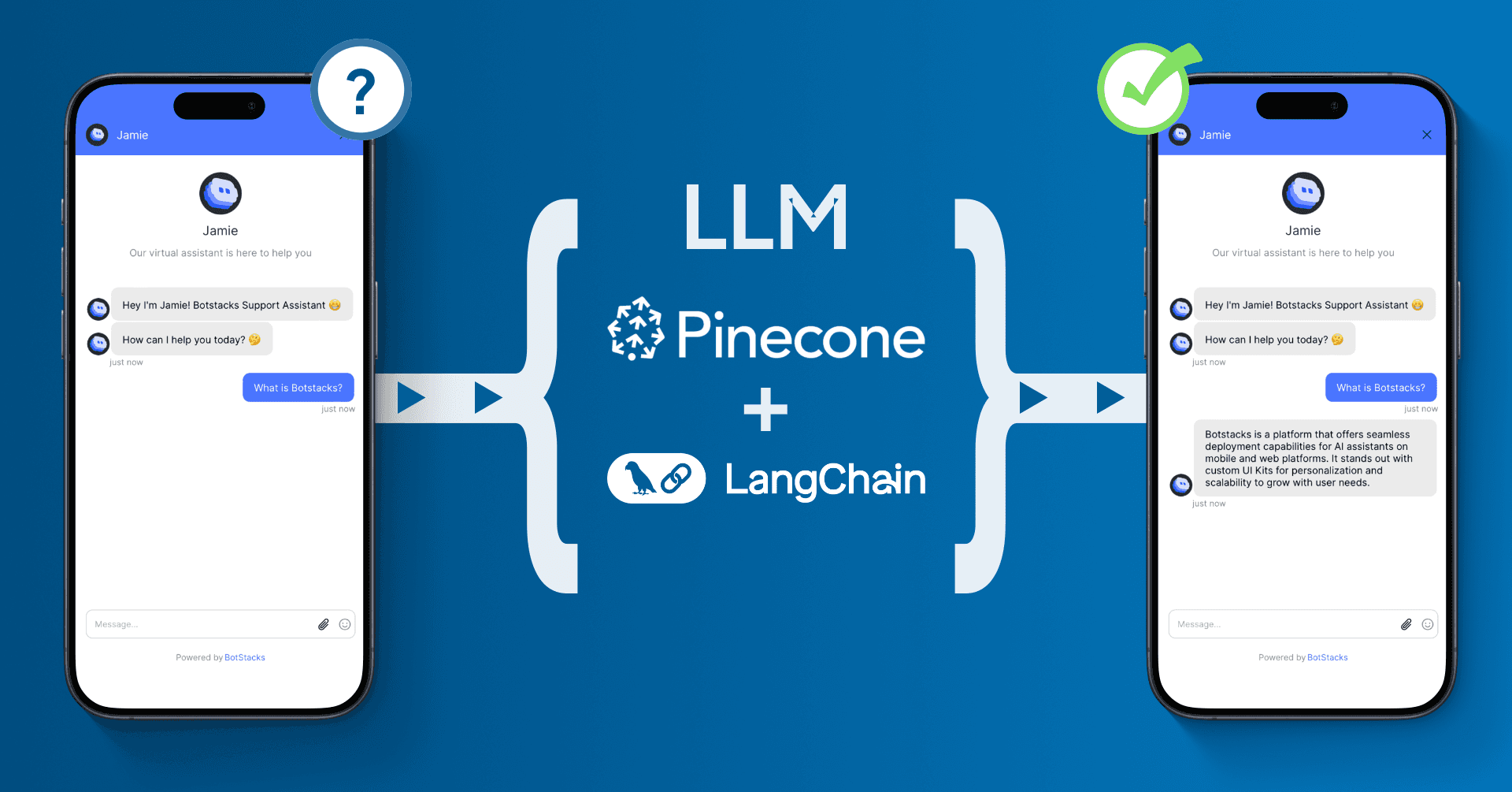 BotStacks bridges this gap by integrating Pinecone's vector database and LangChain's workflow orchestration for you. And it all happens completely behind the scenes.