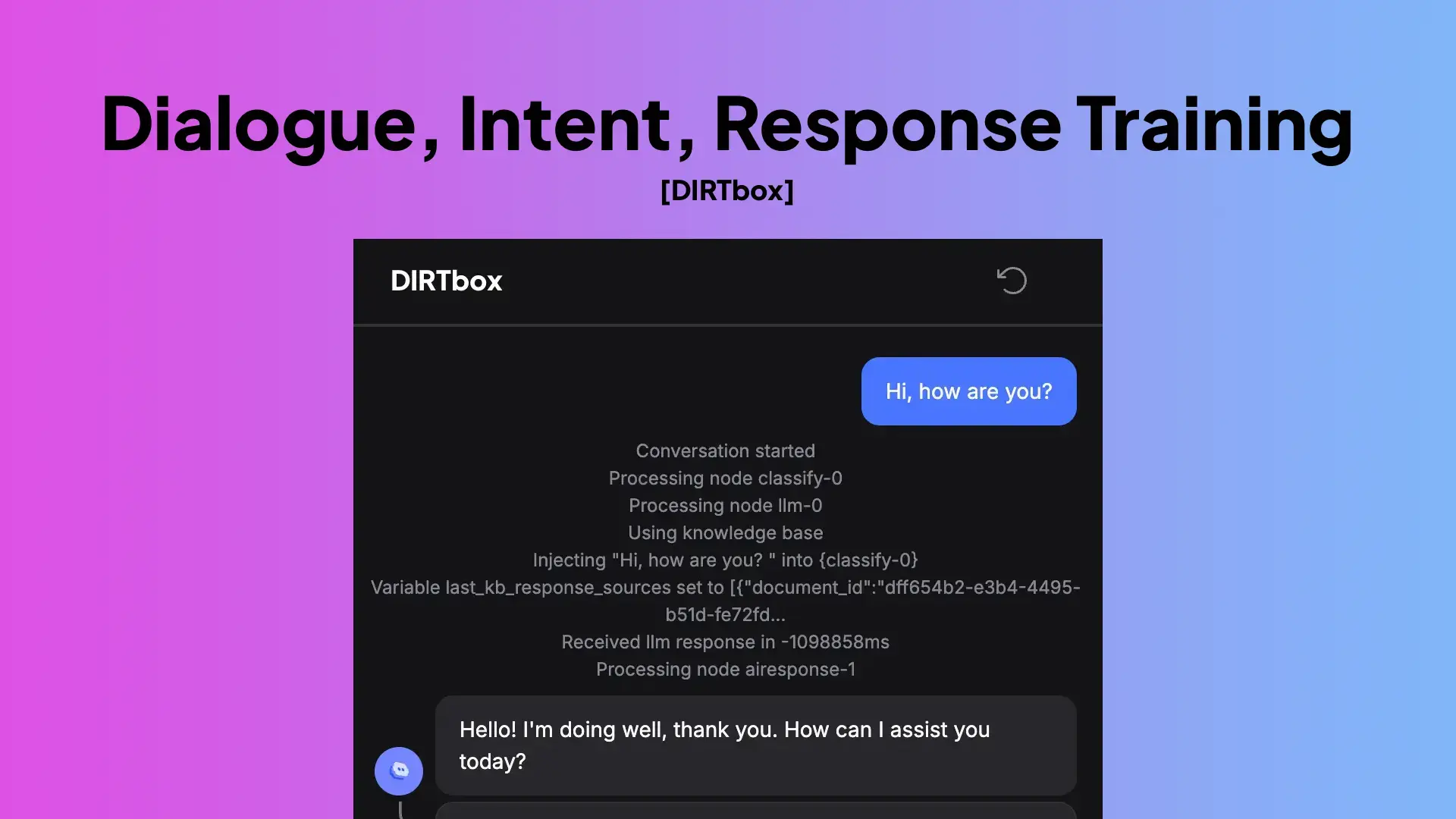 Introducing the DIRTbox: Dialogue, Intent, Response Training