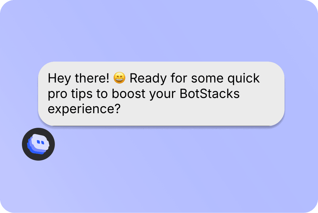 Stacky isn’t just a mascot—he’s packed with useful tips and tricks to enhance your AI experience. Keep an eye out for his insights as you explore BotStacks, making sure you get the most out of every interaction.